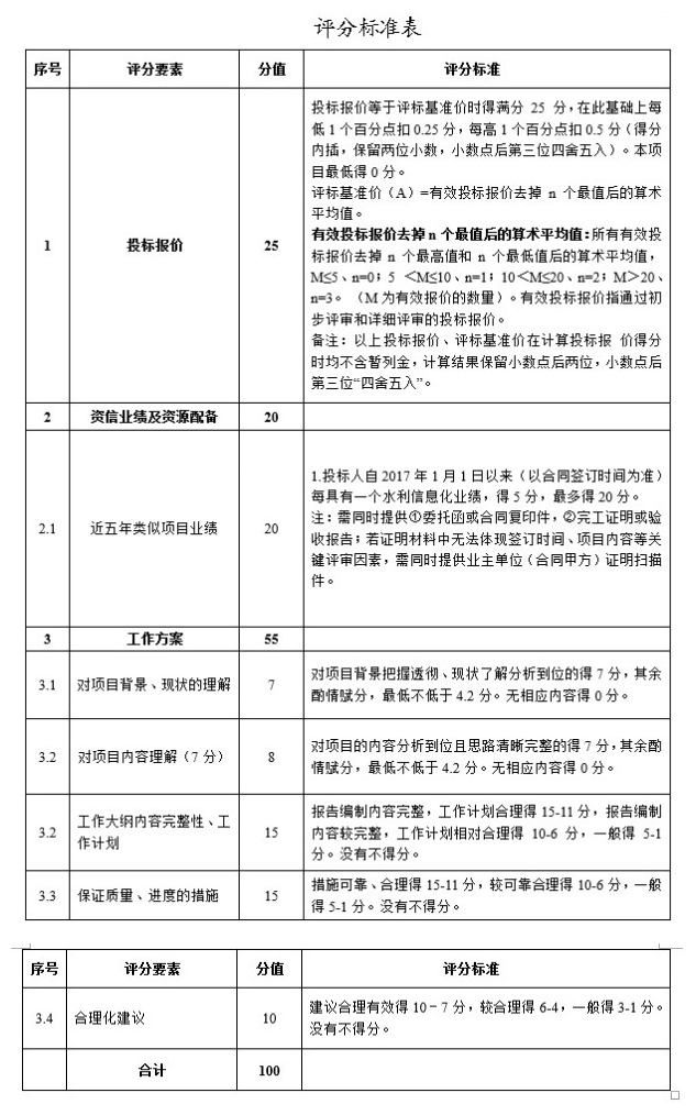 本項目在供應商滿足資格要求的前提下依據業績、資信、報價等方面進行綜合評選,詳見評分標準表。本項目最高限價為95萬元。