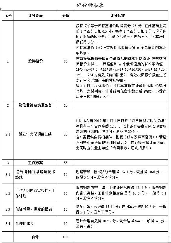 本項目在供應商滿足資格要求的前提下依據業績、資信、報價等方面進行綜合評選,詳見評分標準表。本項目最高限價為20萬元。七、遞交報價文件的地點和時間