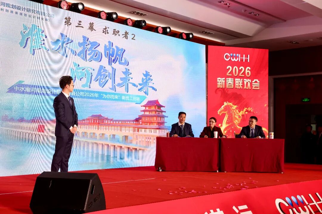 長(zhǎng)淮千里風(fēng)正勁,策馬揚(yáng)鞭再向前!2月8日,公司舉辦2026年職工新春聯(lián)歡會(huì)。淮委黨組成員、副主任吳貴勤出席聯(lián)歡會(huì)并致辭,淮委規(guī)計(jì)處處長(zhǎng)倪大銀受邀參加,公司黨委書記、董事長(zhǎng)孫勇代表公司黨委、領(lǐng)導(dǎo)班子致辭,公司黨委副書記、總經(jīng)理肖建峰,公司領(lǐng)導(dǎo)班子全體成員出席聯(lián)歡會(huì),同全體員工歡聚一堂,喜迎新春共賀佳節(jié)。超過(guò)300名員工觀看了此次新春聯(lián)歡會(huì)。