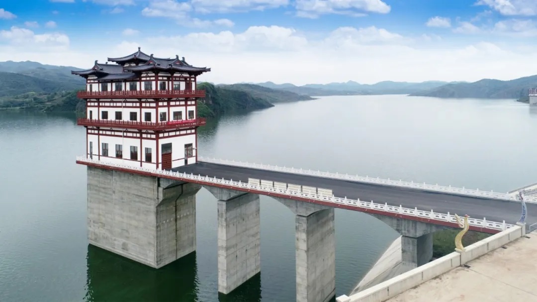 中水淮河公司在建設過程中,主要承擔溢洪道、泄洪洞、輸水洞、電站等建筑物的設計工作。科技創新成為工程高質量建設的核心密碼,公司充分發揮技術領先優勢,采用常規混凝土結合高性能抗沖耐磨混凝土解決泄洪洞高達27m/s的高速水流沖刷問題;利用三維有限元模型對隧洞結構進行分析優化;采用內降外保的技術策略確保建筑物溫控防裂效果;針對當地的地形地貌條件,對工程溢洪道、泄洪洞等泄水建筑物進行水工模型試驗論證及多方案比選;采用高次團粒生態防護措施進行高邊坡坡面防護,將工程主體與周圍自然環境有機融合;通過綜合運用各種先進技術,為工程的安全運行奠定堅實的基礎。此外,庫區內將漢唐文化元素與工程建設巧妙融合,雄偉的大壩與紅墻黛瓦、斗拱飛檐相互映襯,溢洪道、泄洪洞、進水塔等仿唐建筑獨具韻味,為庫區增添了深厚的人文氣息。